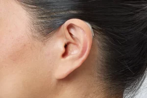 Le contour d’oreille se place derrière l’oreille et transmet le son au conduit auditif via un tube et un embout sur mesure.