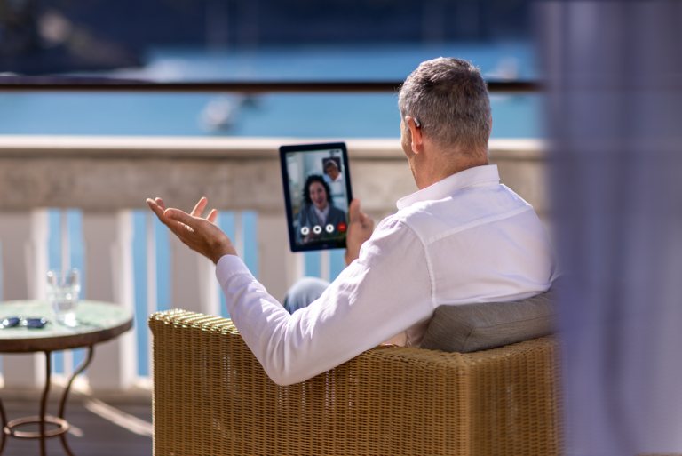 Un appareil RIC est une aide auditive très discrète et moderne. La partie principale se place derrière l’oreille, et un petit écouteur relié par un fil se glisse dans le conduit auditif.